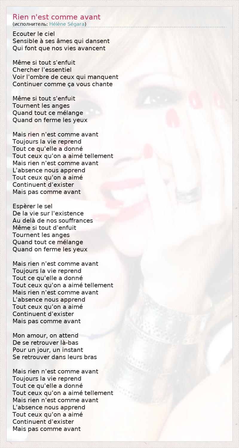 А как ты думаешь, о чем песня "Rien n'est comme avant" ?