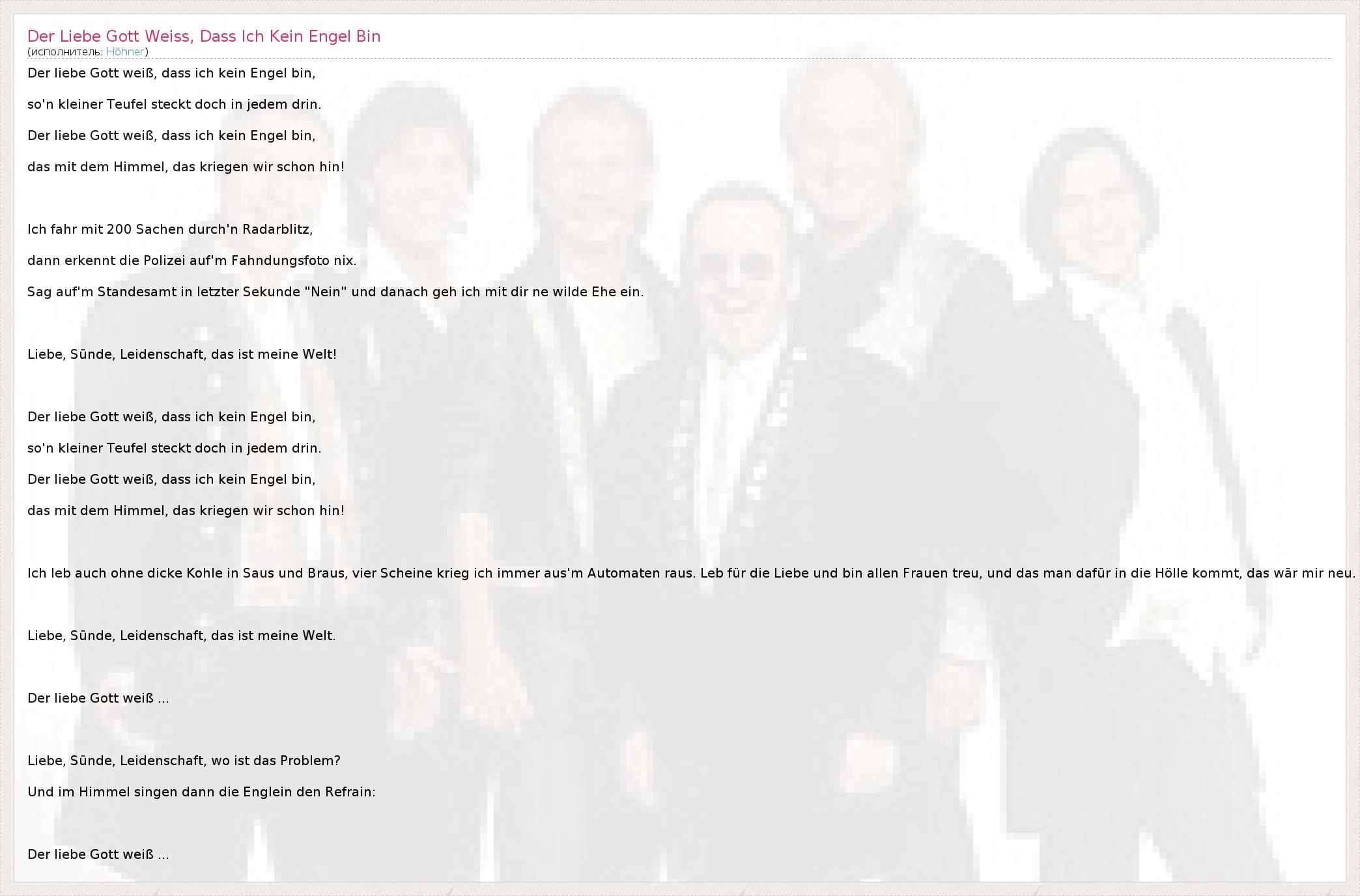 ГлавнаяИсполнителиHöhnerDer Liebe Gott Weiss, Dass Ich Kein Engel Bin