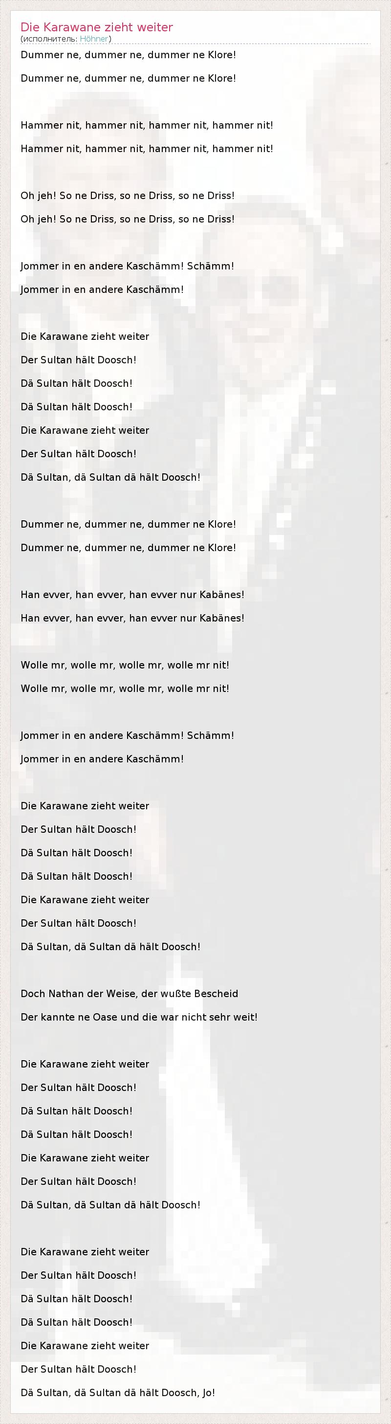 ГлавнаяИсполнителиHöhnerDie Karawane zieht weiter
