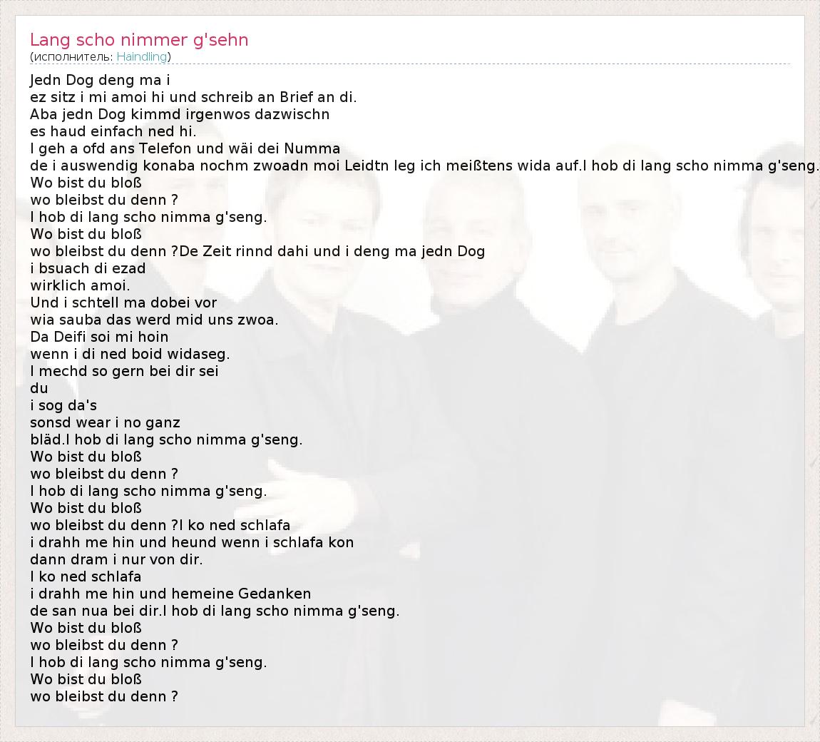 ГлавнаяИсполнителиHaindlingLang scho nimmer g'sehn