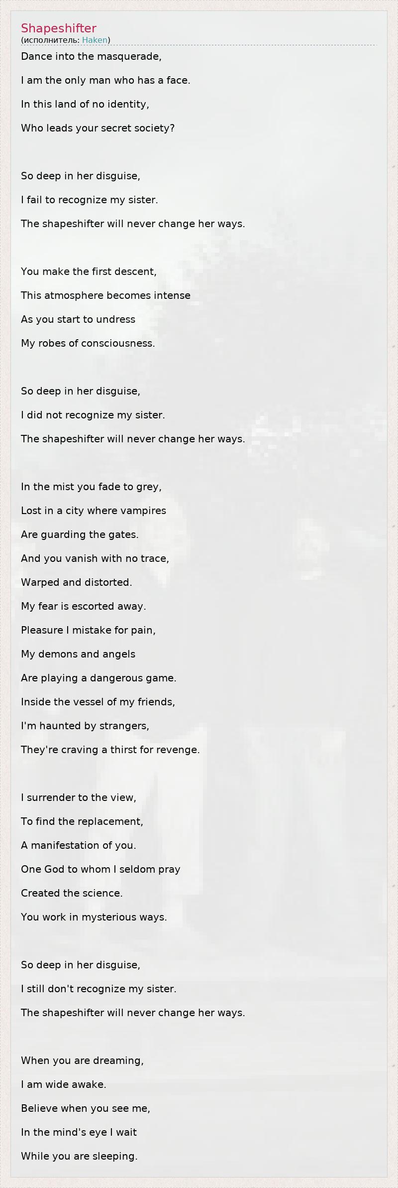 А как ты думаешь, о чем песня "Shapeshifter" ?