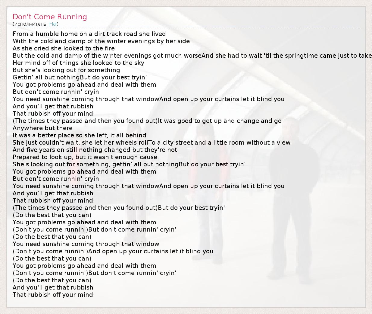 А как ты думаешь, о чем песня "Don't Come Running" ?