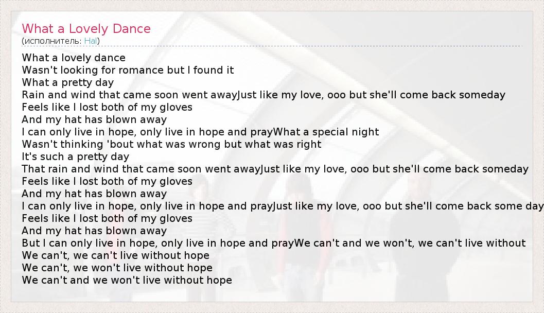 ГлавнаяИсполнителиHalWhat a Lovely Dance