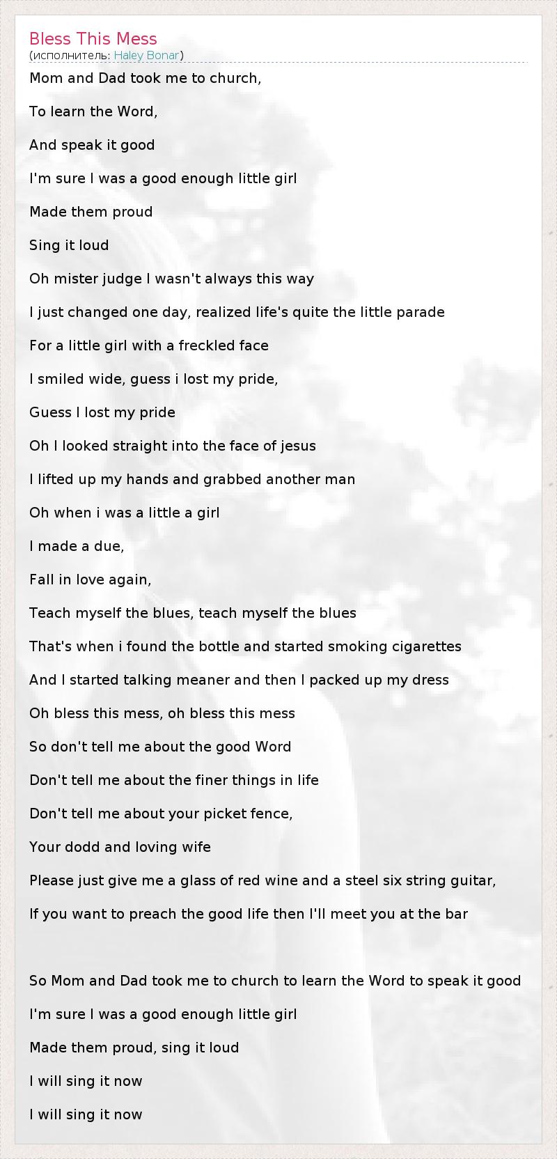 А как ты думаешь, о чем песня "Bless This Mess" ?