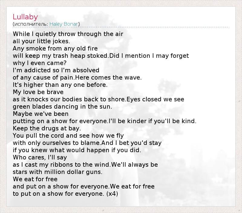 А как ты думаешь, о чем песня "Lullaby" ?