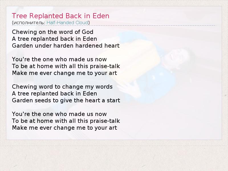 А как ты думаешь, о чем песня "Tree Replanted Back in Eden" ?