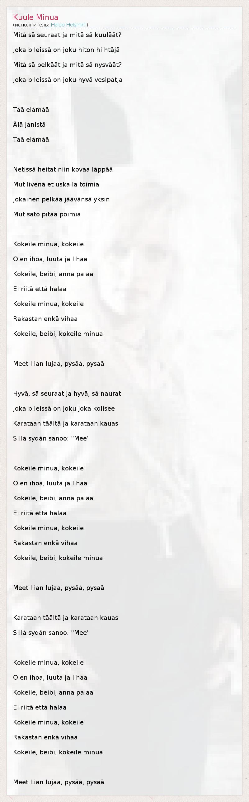 А как ты думаешь, о чем песня "Kuule Minua" ?