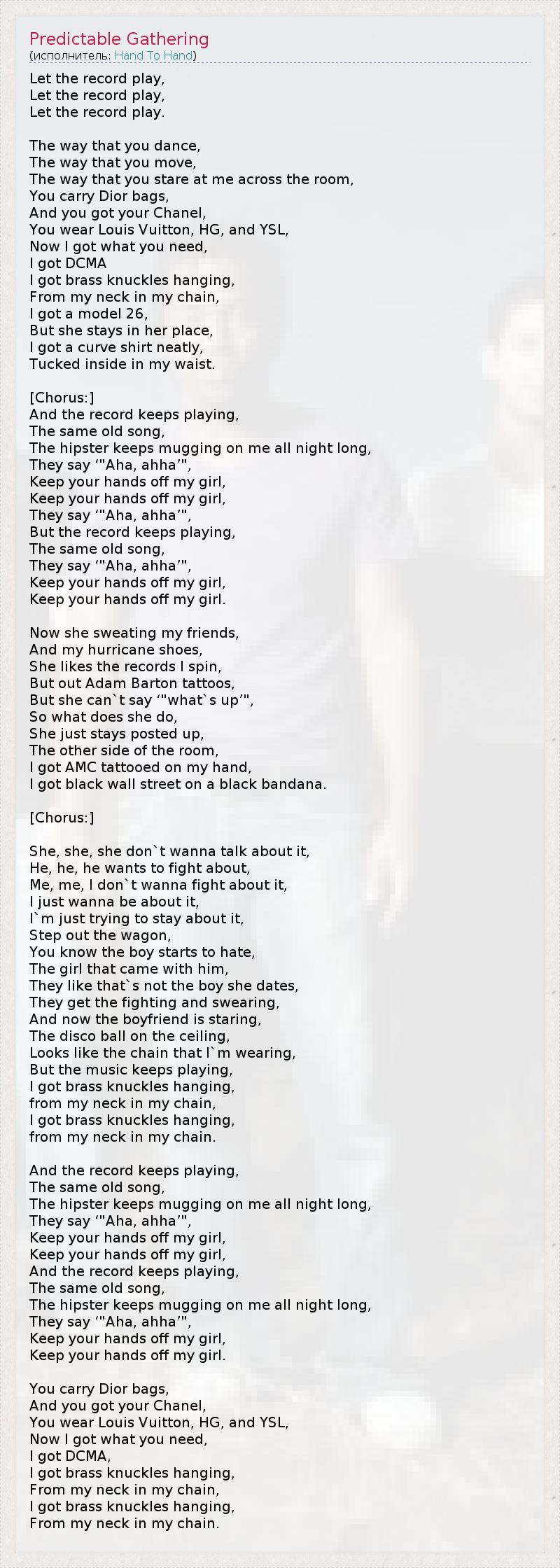 А как ты думаешь, о чем песня "Predictable Gathering" ?