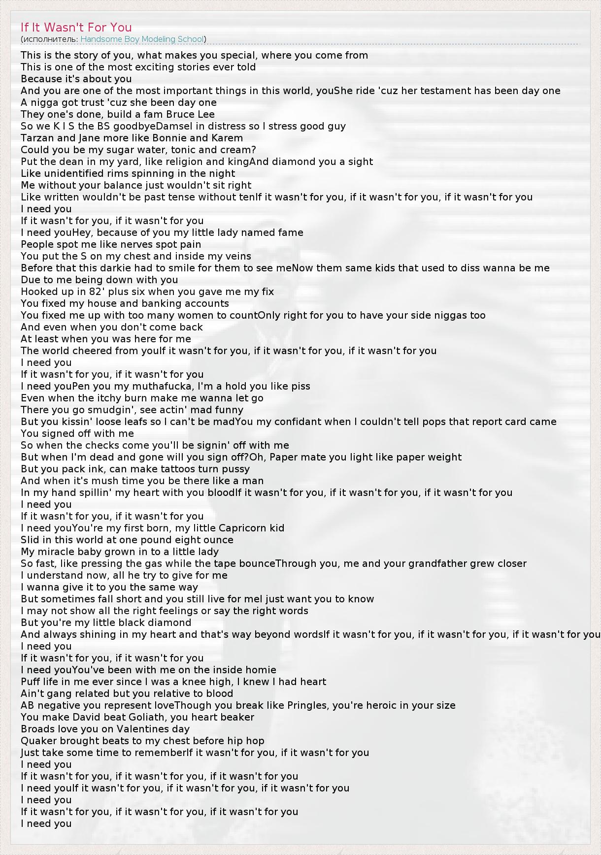 А как ты думаешь, о чем песня "If It Wasn't For You" ?