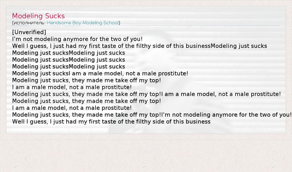 А как ты думаешь, о чем песня "Modeling Sucks" ?