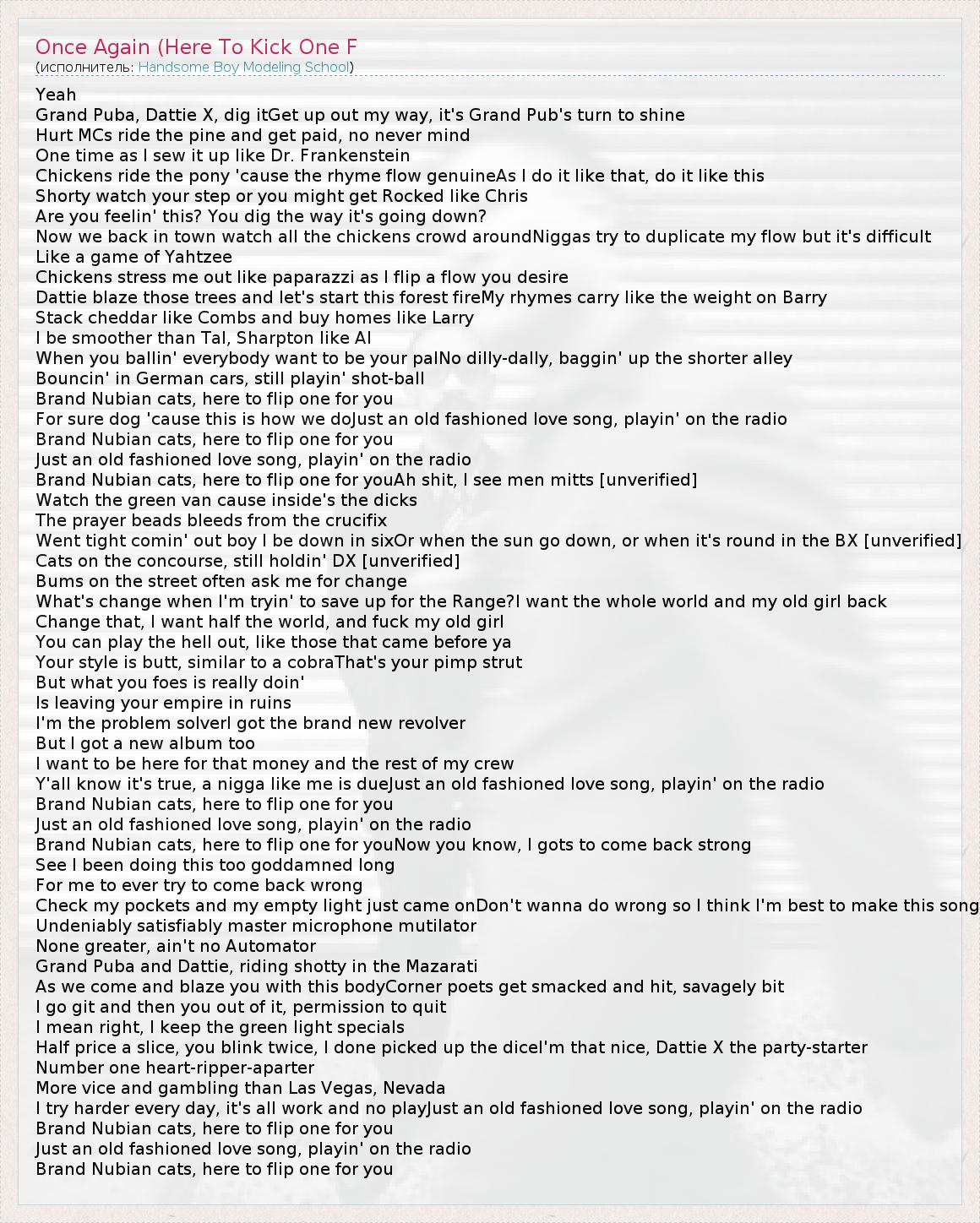 А как ты думаешь, о чем песня "Once Again (Here To Kick One F" ?