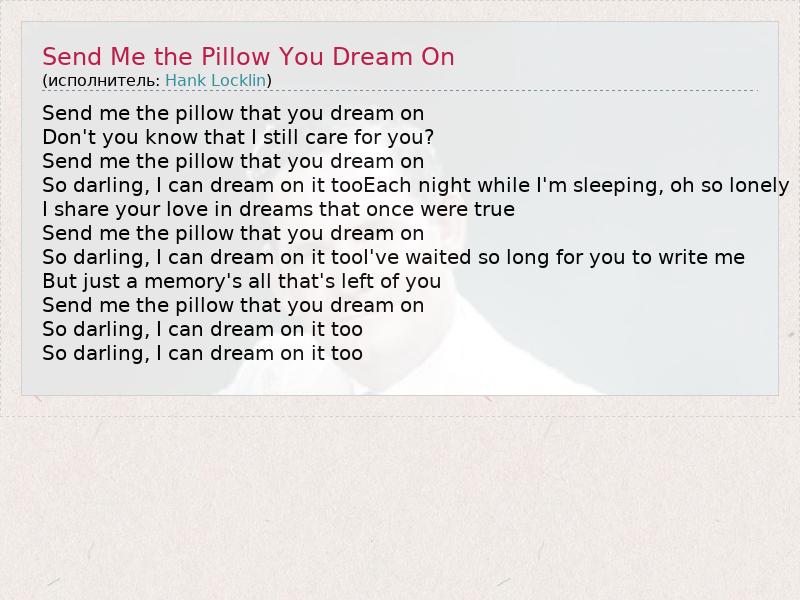 А как ты думаешь, о чем песня "Send Me the Pillow You Dream On" ?