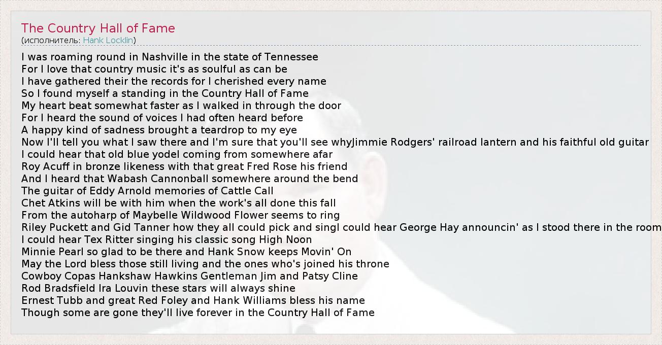 А как ты думаешь, о чем песня "The Country Hall of Fame" ?