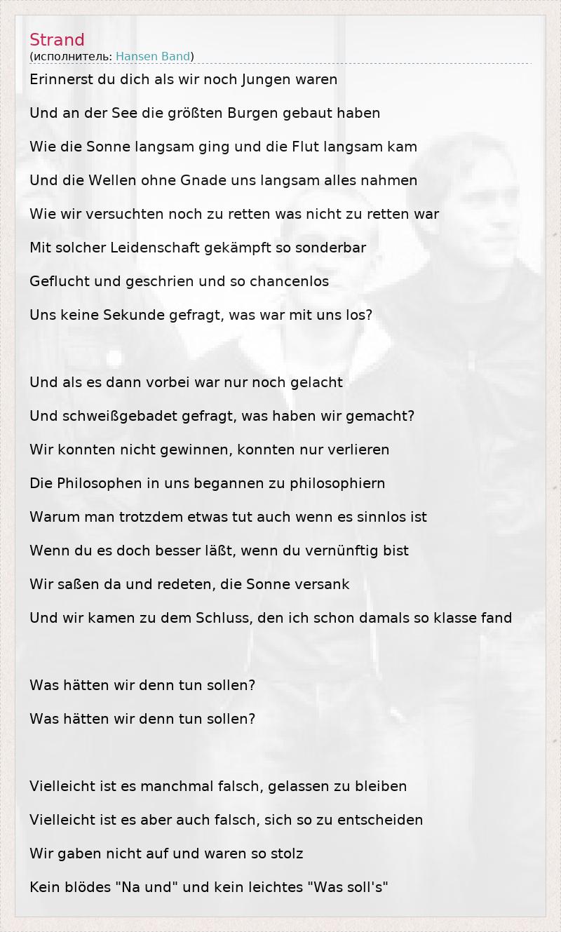 А как ты думаешь, о чем песня "Strand" ?