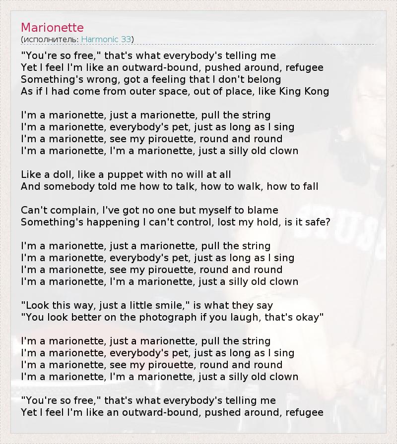 Я марионетка, я марионетка, просто глупый старый клоун...