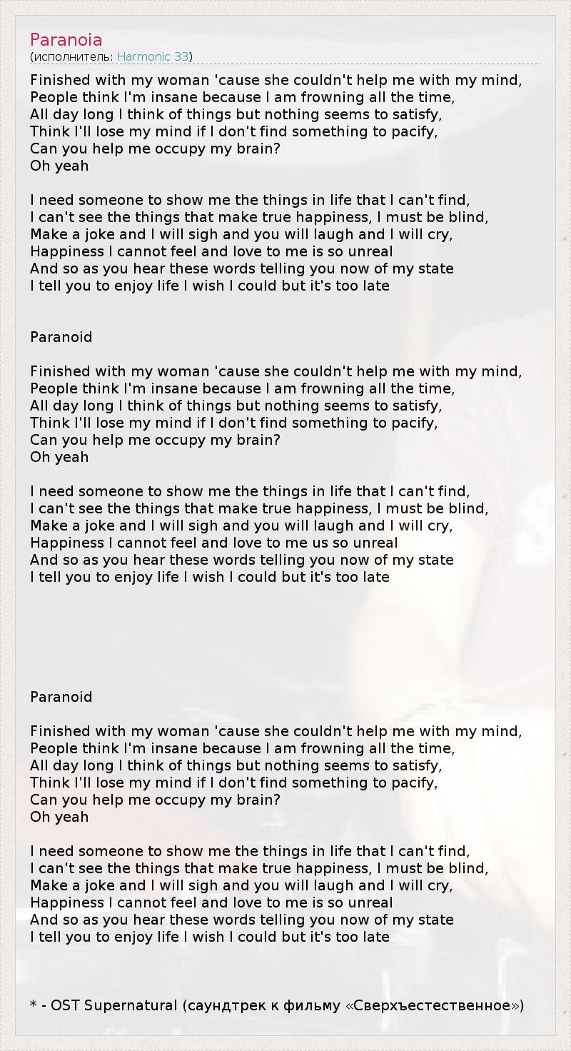 * - OST Supernatural (саундтрек к фильму «Сверхъестественное»)
