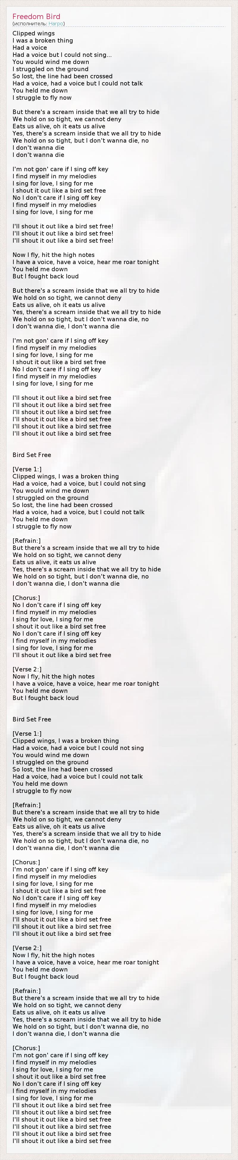 А как ты думаешь, о чем песня "Freedom Bird" ?