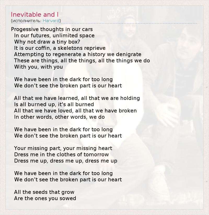 А как ты думаешь, о чем песня "Inevitable and I" ?