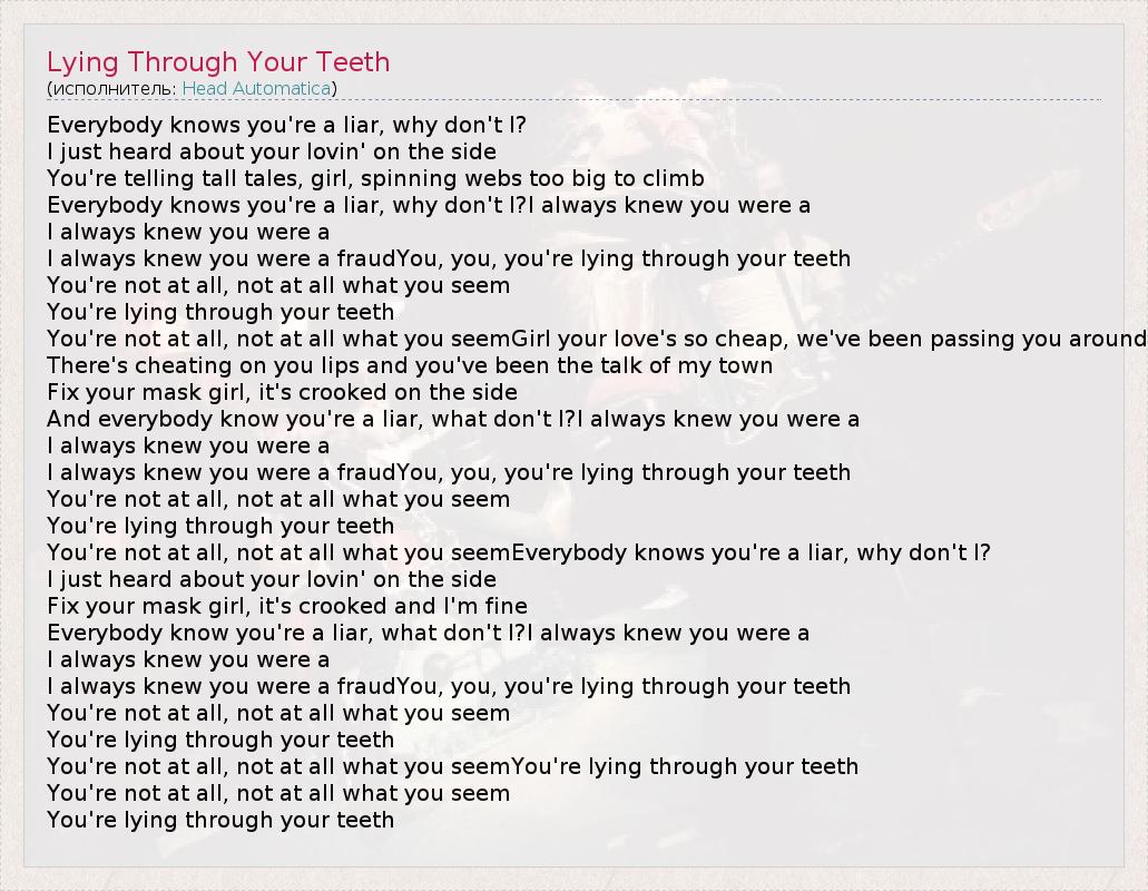 А как ты думаешь, о чем песня "Lying Through Your Teeth" ?