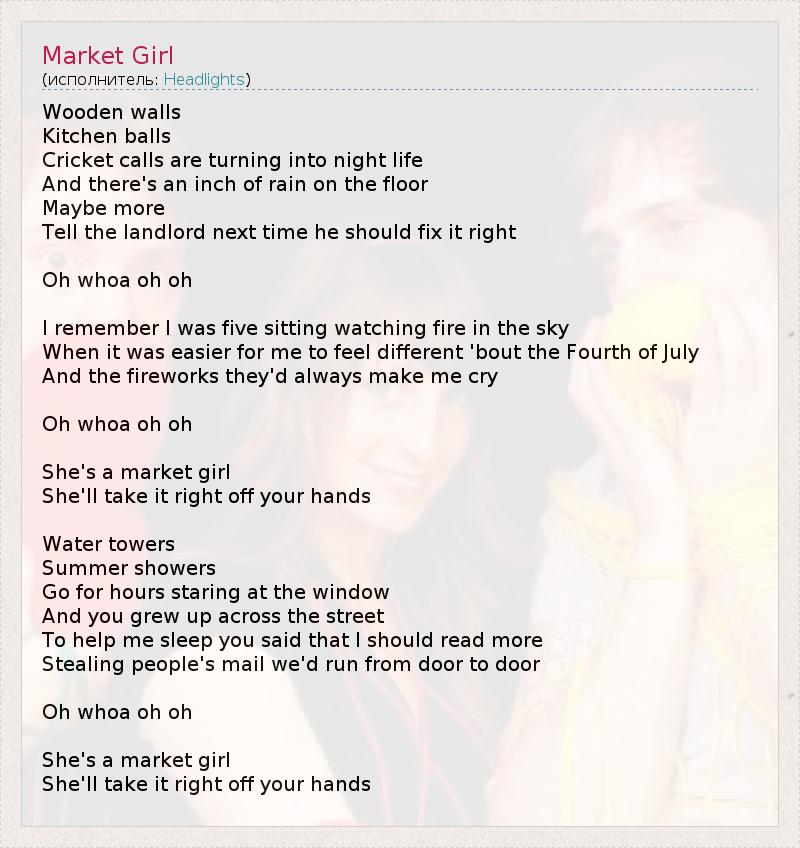 А как ты думаешь, о чем песня "Market Girl" ?