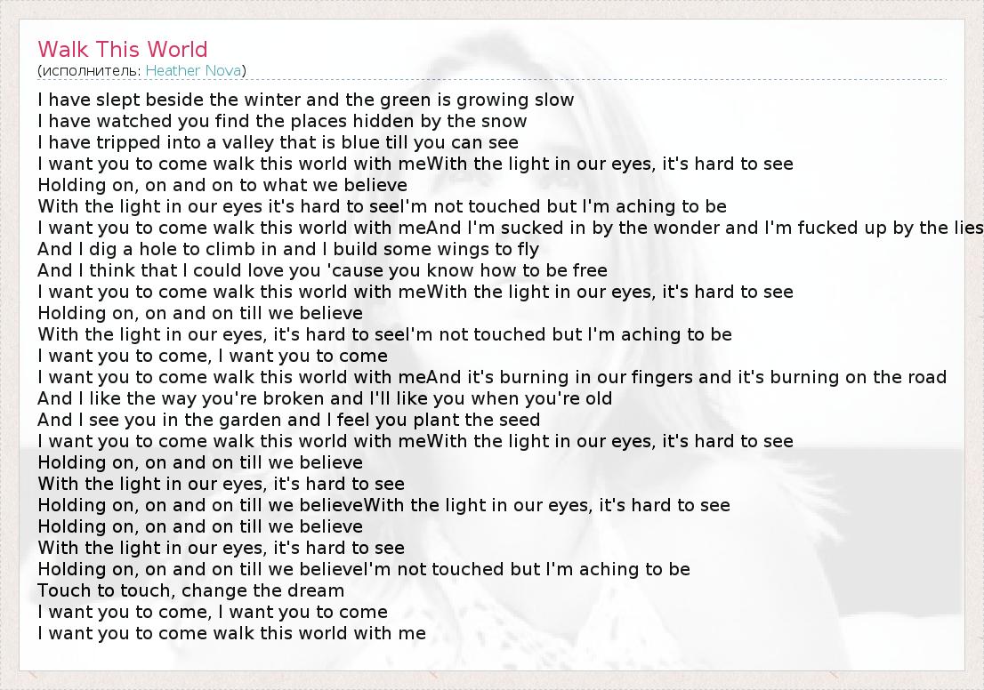 I want you to come walk this world with meAnd it's burning in our fingers and it's burning on the road