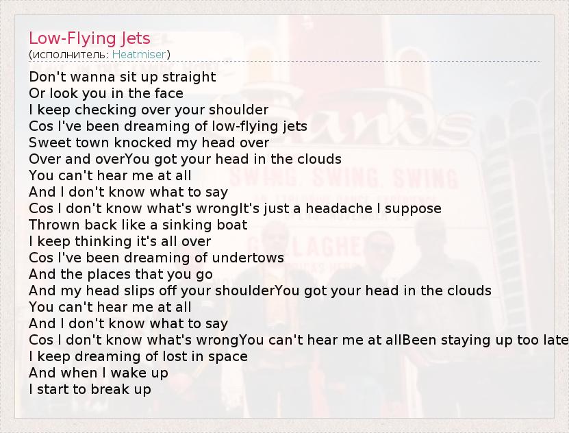 А как ты думаешь, о чем песня "Low-Flying Jets" ?