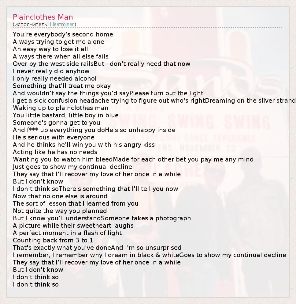 А как ты думаешь, о чем песня "Plainclothes Man" ?