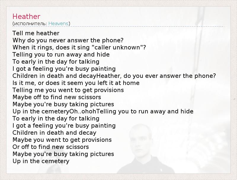 Это интересно:Heavens – совместное начинание гитариста Alkaline Trio Мэтта Скибы и басиста F-Minus Джосии Стейнбрика. Оба музыканта хорошо известны в американской панк-тусовке, однако их новый проект совсем о другом: Heavens апеллируют к группам вроде The Cure или Bauhaus – словом, к старому британскому постпанку с готическим флером. Ну и без Joy Division, как нынче водится, не обошлось.Сочинения парочки, вошедшие в дебютный... продолжение