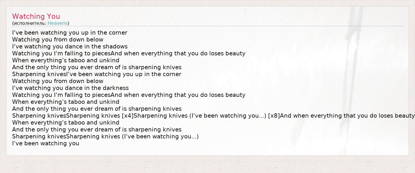 Sharpening knivesSharpening knives [x4]Sharpening knives (I've been watching you...) [x8]And when everything that you do loses beauty