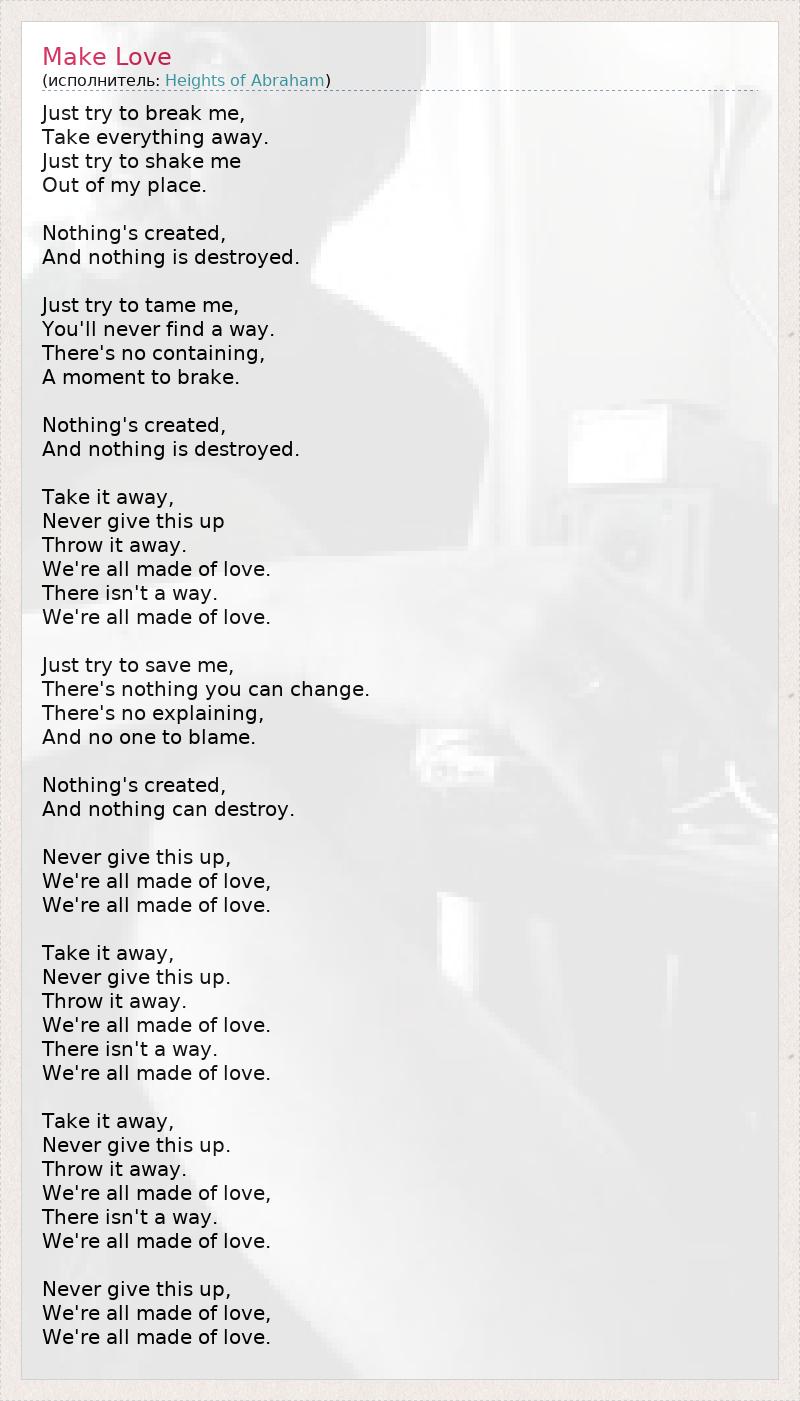 А как ты думаешь, о чем песня "Make Love" ?