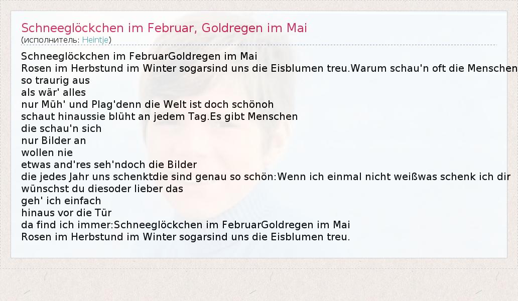 ГлавнаяИсполнителиHeintjeSchneeglöckchen im Februar, Goldregen im Mai