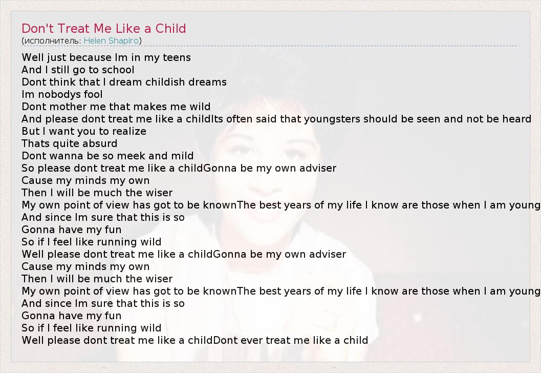 А как ты думаешь, о чем песня "Don't Treat Me Like a Child" ?