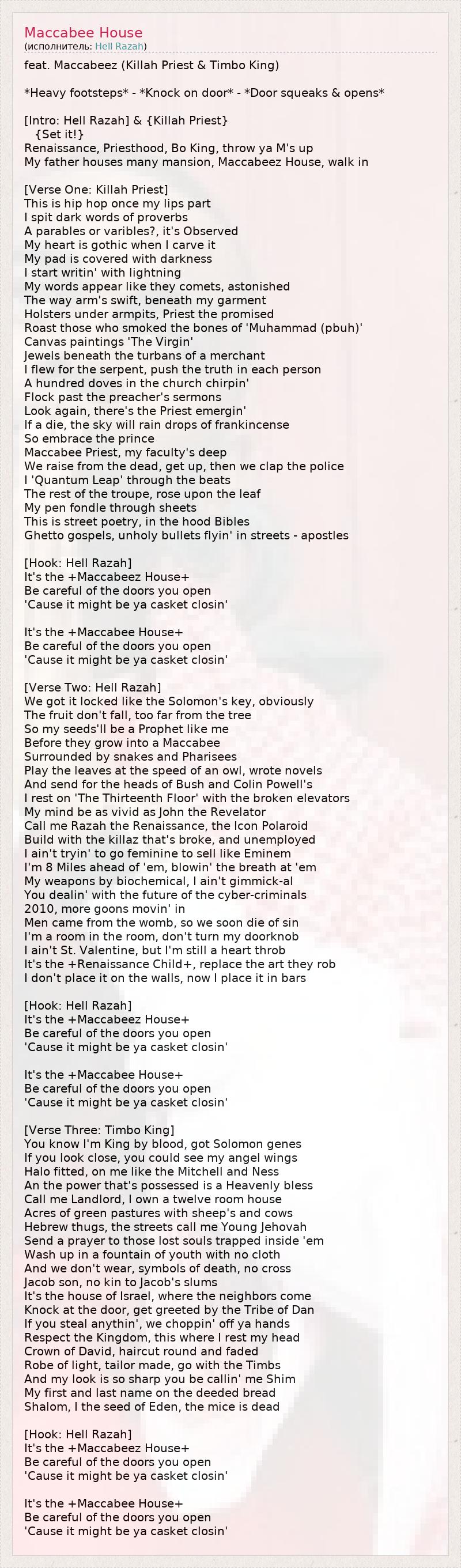 А как ты думаешь, о чем песня "Maccabee House" ?