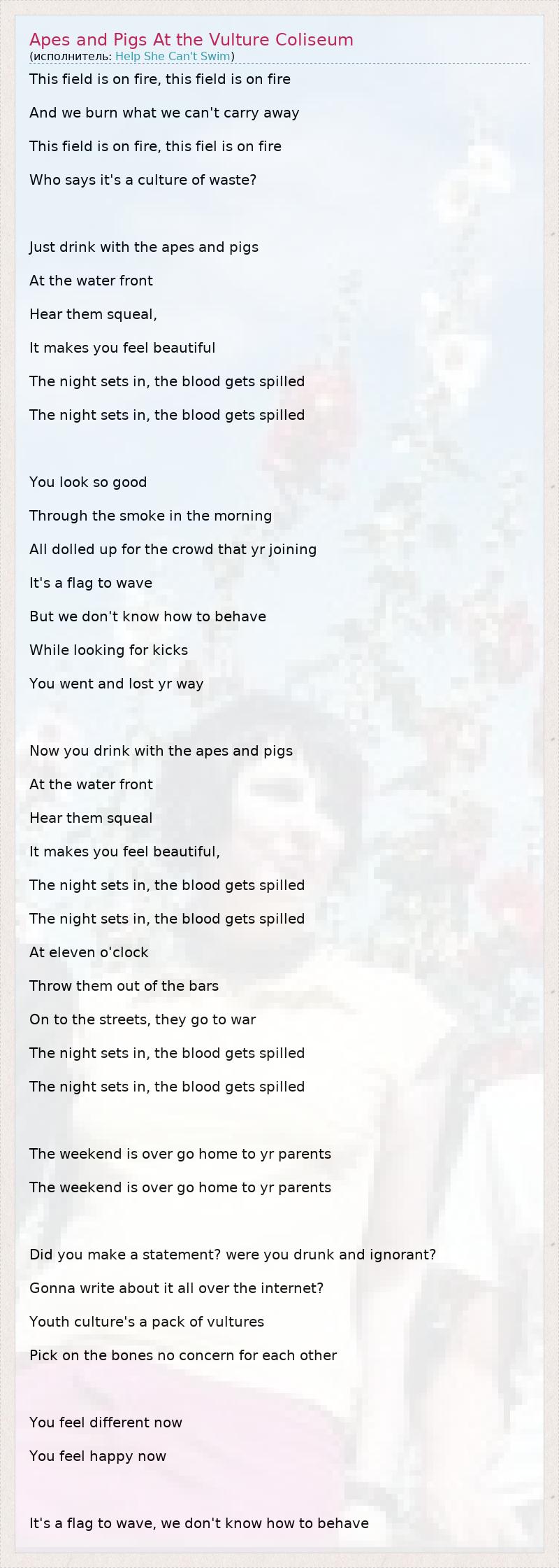 А как ты думаешь, о чем песня "Apes and Pigs At the Vulture Coliseum" ?