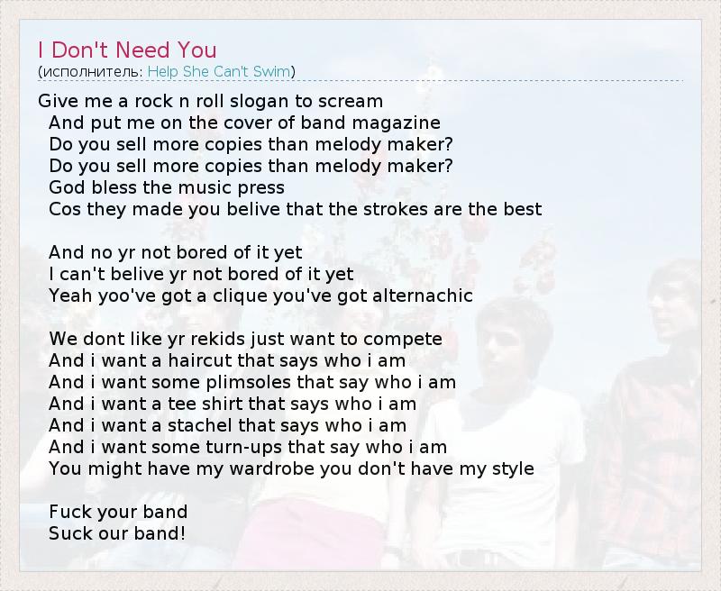 А как ты думаешь, о чем песня "I Don't Need You" ?