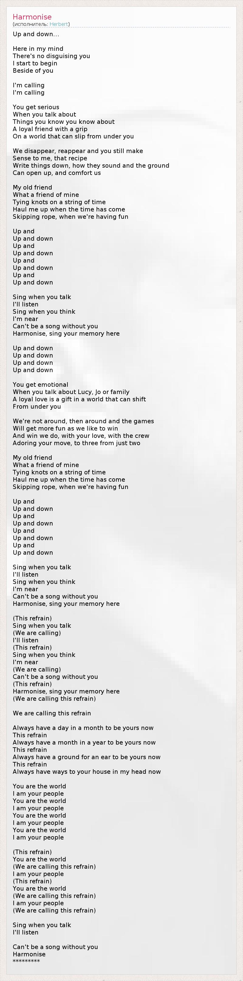 А как ты думаешь, о чем песня "Harmonise" ?