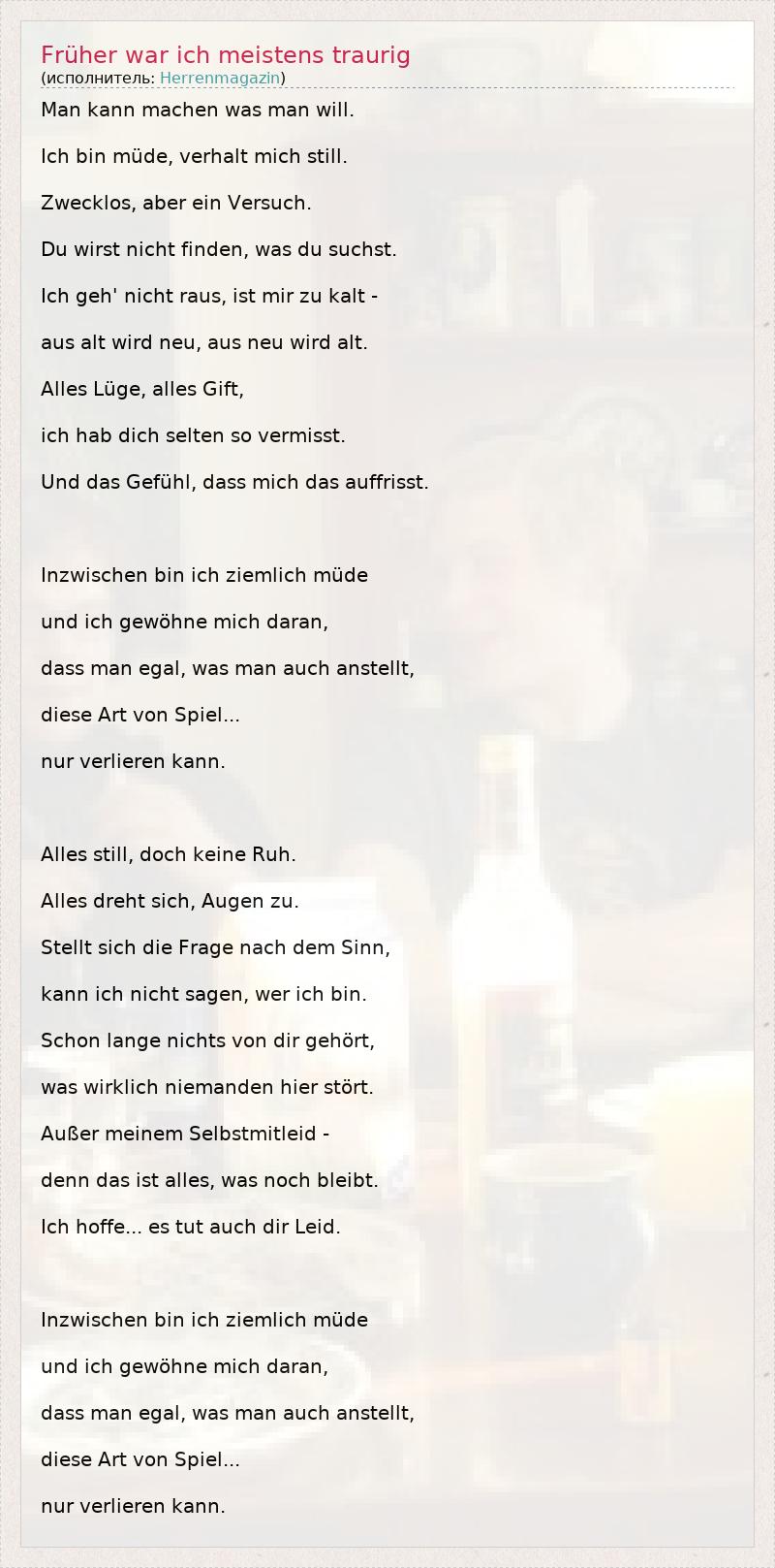 А как ты думаешь, о чем песня "Früher war ich meistens traurig" ?