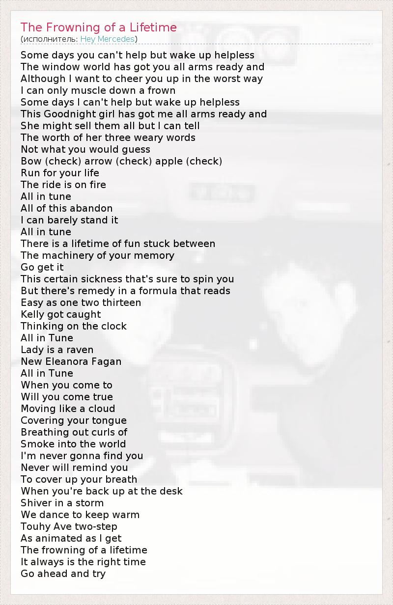 А как ты думаешь, о чем песня "The Frowning of a Lifetime" ?
