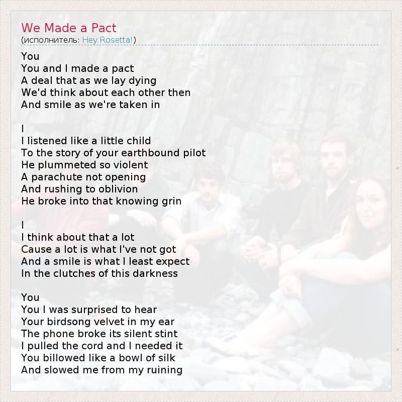 А как ты думаешь, о чем песня "We Made a Pact" ?