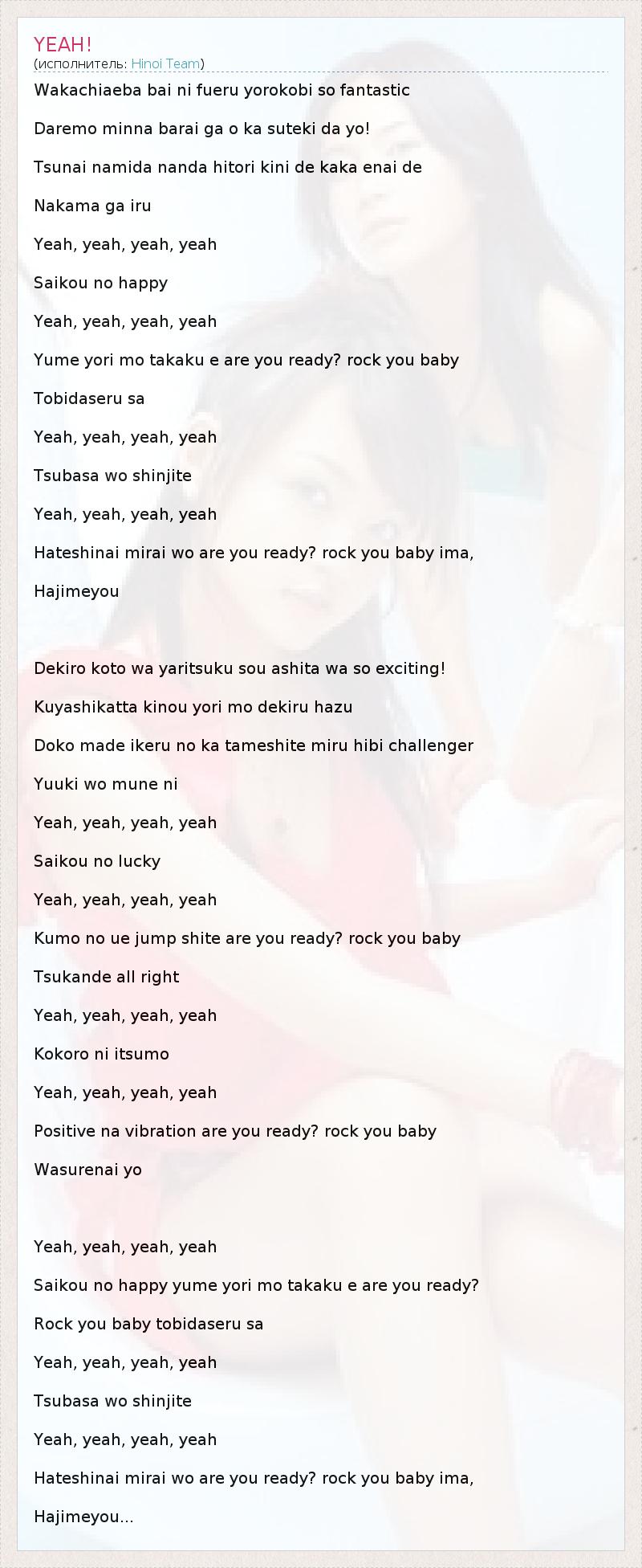 Hateshinai mirai wo are you ready? rock you baby ima,