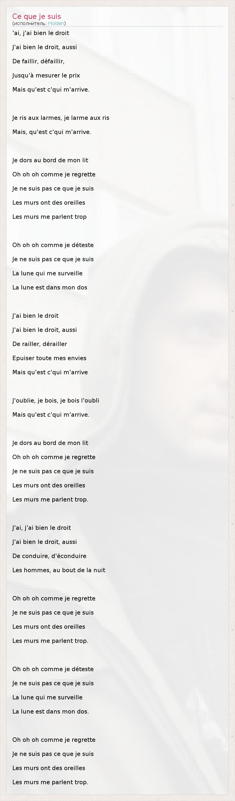 А как ты думаешь, о чем песня "Ce que je suis" ?