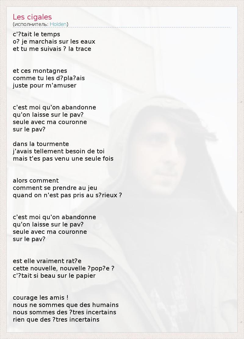 c'?tait le temps o? je marchais sur les eaux et tu me suivais ? la trace et ces montagnes comme tu les d?pla?ais juste pour m'amuser c'est moi qu'on abandonne qu'on laisse sur le pav? seule avec ma couronne sur le pav? dans la tourmente j'avais tellement besoin de toi mais t'es pas venu une seule fois alors comment comment se prendre au jeu quand on n'est pas pris au s?rieux ? c'est moi qu'on abandonne qu'on laisse sur le pav? seule avec ma couronne sur le pav? est elle vraiment rat?e cette nouvelle, nouvelle ?pop?e ? c'?tait si beau sur le papier courage les amis ! nous ne sommes que des humains nous sommes des ?tres incertains rien que des ?tres incertains