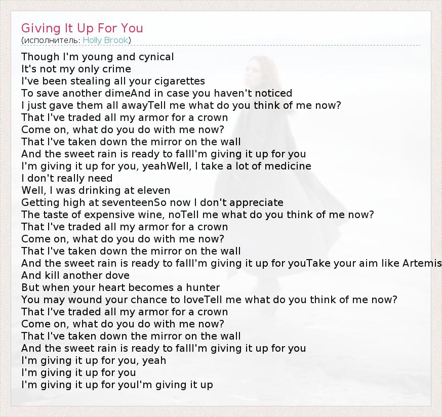А как ты думаешь, о чем песня "Giving It Up For You" ?