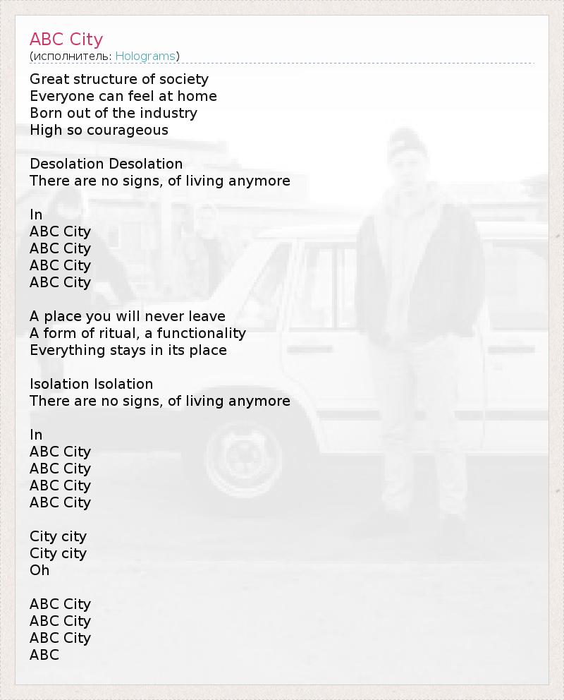 А как ты думаешь, о чем песня "ABC City" ?