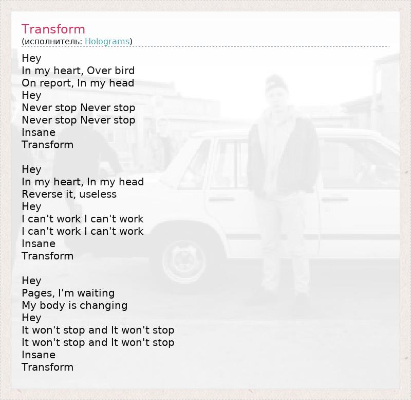 А как ты думаешь, о чем песня "Transform" ?