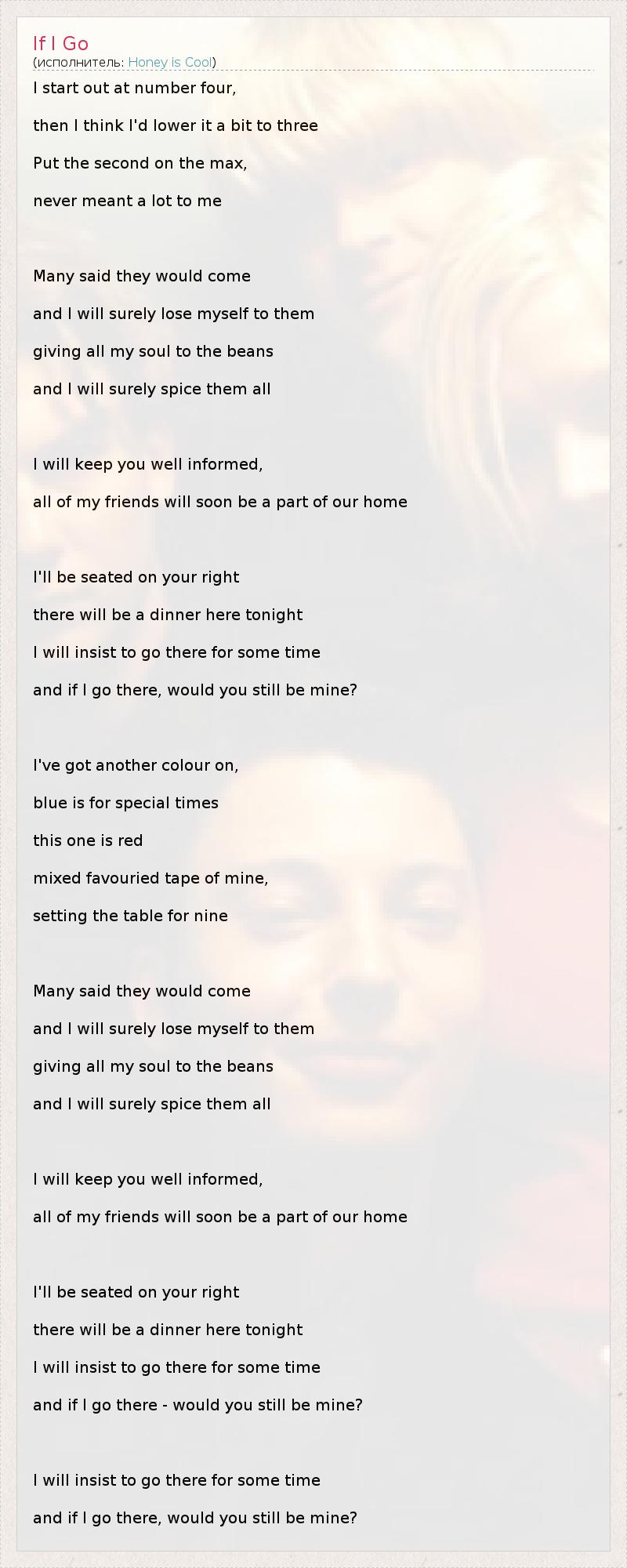 I start out at number four, then I think I'd lower it a bit to three Put the second on the max, never meant a lot to me Many said they would come and I will surely lose myself to them giving all my soul to the beans and I will surely spice them all I will keep you well informed, all of my friends will soon be a part of our home I'll be seated on your right there will be a dinner here tonight I will insist to go there for some time and if I go there, would you still be mine? I've got another colour on, blue is for special times this one is red mixed favouried tape of mine, setting the table for nine Many said they would come and I will surely lose myself to them giving all my soul to the beans and I will surely spice them all I will keep you well informed, all of my friends will soon be a part of our home I'll be seated on your right there will be a dinner here tonight I will insist to go there for some time and if I go there - would you still be mine? I will insist to go there for some time and if I go there, would you still be mine?
