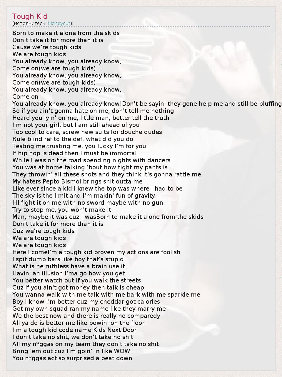 А как ты думаешь, о чем песня "Tough Kid" ?