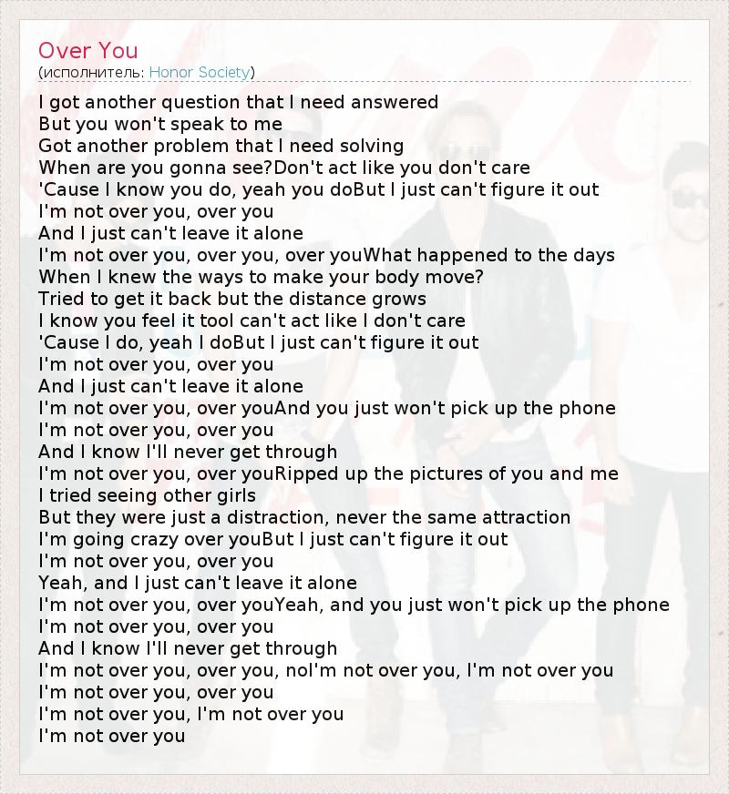 I'm not over you, over you, noI'm not over you, I'm not over you
