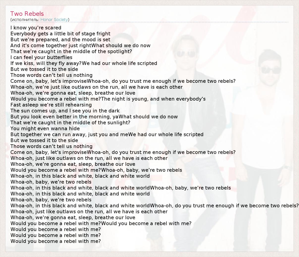 А как ты думаешь, о чем песня "Two Rebels" ?