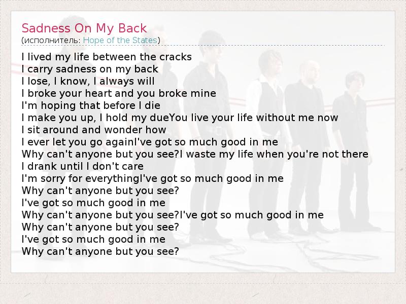 А как ты думаешь, о чем песня "Sadness On My Back" ?